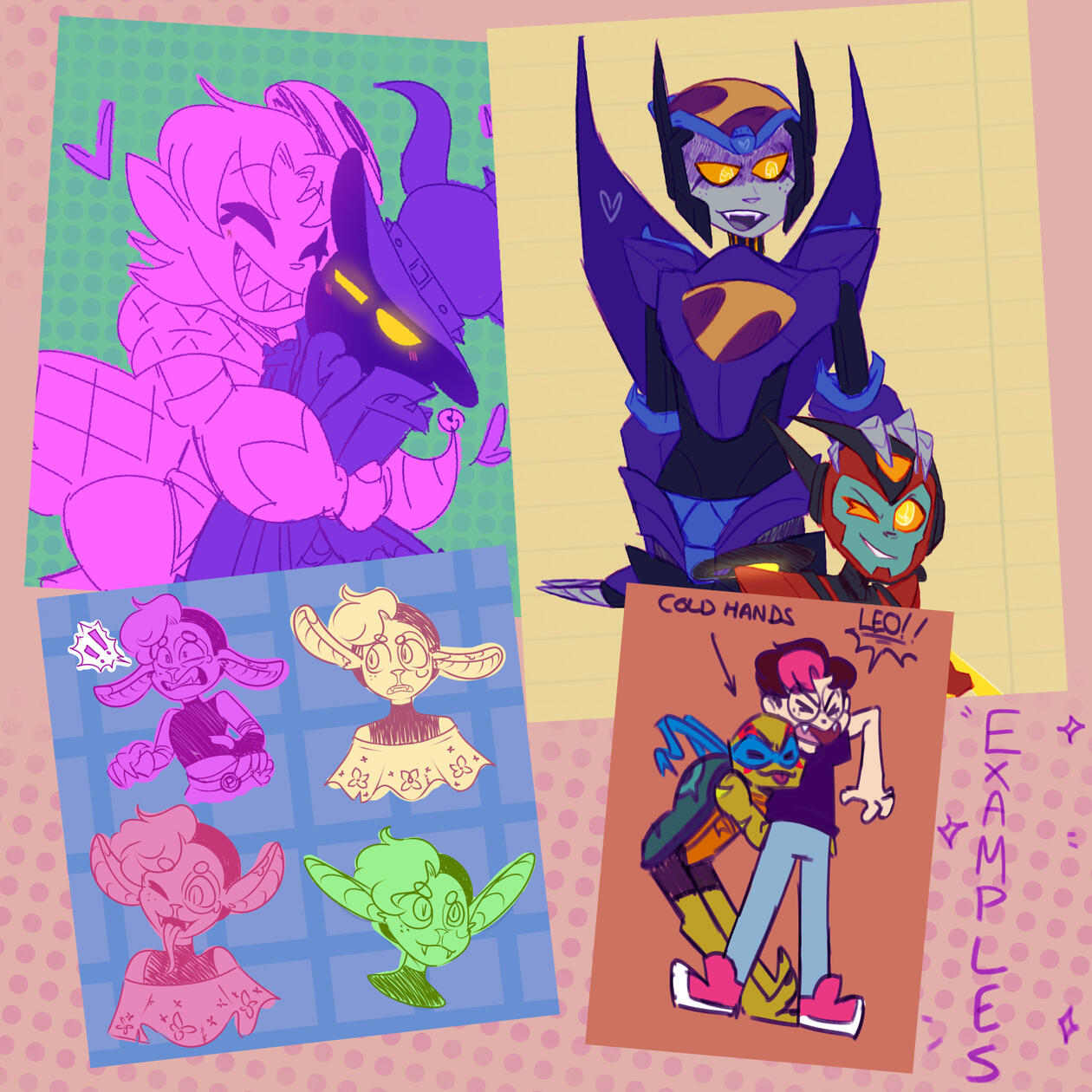 Heyo, I'm Mechano! Your local autistic aroace robot making dial-up noises over whatevers gripping my brain at the moment. Mostly an artist, sometimes a writer.I mostly post fandom stuff! My original projects are kinda spread out and even when I do fixate on them I don't really post about them.My brain likes to switch up fixations, there's usually a few brief but intense ones, but the usual suspects are sonic the hedgehog (I got a whole sideblog for that one), pokemon, and splatoon.I love making fandom OCs and having them interact with canon characters. I am the worlds biggest OC enjoyer, you do not understand.I'm also a big self insert fan, but i mostly keep that to my sideblog for the sake of blog organisation. My self inserts tend to lean more OC than 'true' self inserts, but the comfort thing is waaay more intense with them.I'm generally a quiet guy so if we're in each other notes often enough I'll probably be like "oh! friend :) ". But I've been trying to push myself out there more recently. I'm not very good at that lmao. I'm a shy little machine with crippling anxiety.